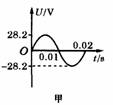 10.一个理想变压器输入电压波形如图甲所示,原副线圈匝数比为10︰1,电流表读数为2A,则( ) A.电压表的读数为28.2 V B.输入功率为56.4 W