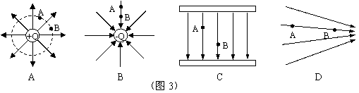 8.在图3 所示的各电场中,A、B两点电场强度相等的是: (