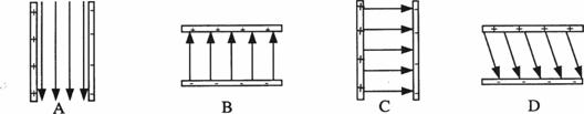 13.下列哪个电场线图正确描述了两块靠近的、分别带等量正负电荷的平行金属板间的匀强电场? ( )
