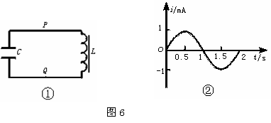 9.如图6-①所示,在LC振荡电路中,通过P点的电流i变化规律如图6-②所示,且把通过P点向右的电流规定为i的正方向,则下列叙述正确的是