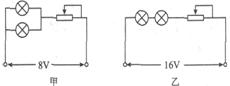 把两个相同的电灯分别接在图中甲、乙两个电路里,调节滑动变阻器,使两灯都正常发光,两电路中消耗的总功率分别为