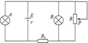 13. 如图所示电路中.A、B两灯均正常发光,R为一滑动变阻器,P为滑动片,若将滑动片向下滑动,则( )