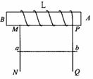 18.如图所示,导轨MN,PQ之间有垂直导轨平面的磁场,为使线圈L的A端成为条形磁铁的N极,则下面说法正确的是………………………( )