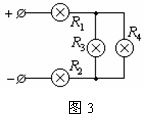 如图3所示,四个灯泡的电阻分别是R1=R3=10欧,R2=R4=30欧,分别用P1、P2、P3、P4表示这四个灯泡的电功率,那么(