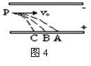 10.如图4所示,有三个质量相等分别带正电、负电和不带电的小球,从平行板电场中的P点以相同的初速垂直于E进入电场,它们分别落到A、B、C三点,则可判断:( )