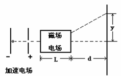 (2)如果撤去磁场,电场区域的长度为L,电场强度的方向和电子束初速方向垂直,电场区域离屏幕距离为d 。要使电子束在屏上偏离距离为y,则所需加速电压是多少?