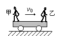 如图所示,光滑水平面上有一辆质量为2m的小车,车上左右两端分别站着甲、乙两人,他们的质量都是m,开始两个人和车一起以速度v0向右匀速运动.某一时刻,站在车右端的乙先以相对于地面向右的速度u向右跳离小车,然后站在车左端的甲以相对于地面向左的速度u向左跳离小车.两人都离开小车后,小车的速度将是 B