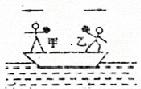 16、如图所示,静止在湖面上的小船有甲、乙两人分别向相反方向水平抛出质量相同的小球,甲先向左抛,乙后向右抛,并且抛出后两小球相对于岸的速率相等。设水的阻力不计,则下列说法中正确的是 C