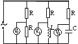 在图5所示的交流电路中,保持电源电动势一定,当交变电流的频率增大时,各交流电压表的示数将( )
