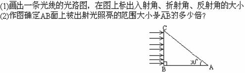 (12分)如图所示为一个三棱镜横截面,∠A=30°,∠B=90°,棱镜材料折射率![]()