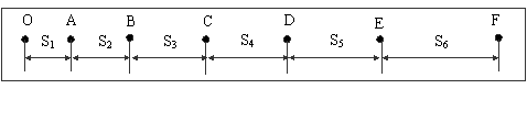 2、在“测定匀变速直线运动的加速度”的实验中,某同学的实验纸带如图所示。取O为起始位置,每隔相同时间T = 0.1s取一个计数点,分别是A、B、C、D、E、F,每相邻两计数点间距离依次为S1 = 2.0cm、S2 = 2.5cm、S3 = 3.0cm、S4 = 3.5cm、S5 = 4.0cm、S6 = 4.5cm,加速度a = m/s2,D点的瞬时速度vD = m/s。