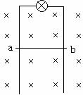 如图所示,竖直平面内有长金属导轨处于B=0.5T的水平向里的匀强磁场中,导轨中串有电阻为0.2Ω、额定功率为5W的小灯泡,质量为50g、长为0.5m的金属棒ab。ab可沿导轨做无摩擦滑动,导轨和金属棒电阻不计,g=10m/s2。求: