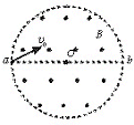 (22分)在真空中,半径为r=3×10-2 m的圆形区域内,有一匀强磁场,磁场的磁感应强度为B=0.2T,方向如图所示,一带正电粒子,以初速度v0=106m/s的速度从磁场边界上直径ab一端a点处射入磁场,已知该粒子荷质比q/m=108 C/kg,不计粒子重力,则
