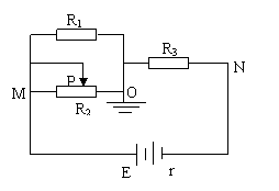如图,电源电动势为E,内阻为r,电路中O点接地,当滑动变阻器的滑片P向右滑动时,M、N两点的电势变化情况是: