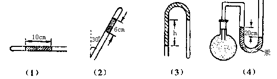 23.当大气压强为76cmHg时,如图中四种情况下(图3中h=10cm)被水银封闭气体的压强分别为: