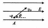 10.一带电荷量为一g的油滴,从A点以速度V0沿与水平方向的成θ角的方向射入匀强电场,如图,已知油滴质量为m,测得它到达最高点B时的速度大小恰为Vo,则B点位置在