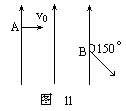 18.如图11所示,电子的电量为e,质量为m,以v0的速度沿与场强垂直的方向从A点飞入匀强电场,并从另一侧B点沿与场强方向成150°角飞出.则A、B两点间的电势差为________.