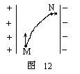 19.如图12所示,AB板间有一匀强电场,两板间距为d,所加电压为U,有一带电油滴以初速v竖直向上自M点飞入电场,到达N点时,速度方向恰好变为水平,大小等于初速v,试求: