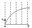 如下图所示,等距平行虚直线表示某电场的一组等势面,相邻等势面间的距离为0.03m,电势差为10V,AB是垂直于等势面的线段.一带电粒子的荷质比为9×106C/kg.粒子在A点的速度v0为10 m/s,并与等势面平行,在电场力作用下到达C点,则CB线段长为_______m.