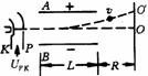 图所示电子射线管.阴极K发射电子,阳极P和阴极K间加上电压后电子被加速.A、B是偏向板,使飞进的电子偏离.若已知P、K间所加电压UPK=2.5×103V,偏向板长L=6.0×10-2m,板间距离d=10-2m,所加电压UAB=100V.R=14×10-2m.电子质量me=9.1×10-31kg,电子电量e=-1.6×10-19C.设从阴极出来的电子速度为0.试问: