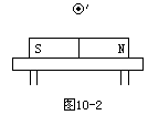 通电导线置于条形磁铁上方使通电导线置于磁场中如图10-3所示,由左手定则判断通电导线受到向下的安培力作用,同时由牛顿第三定律可知,力的作用是相互的,磁铁对通电导线有向下作用的同时,通电导线对磁铁有反作用力,作用在磁铁上,方向向上,如图10-4。对磁铁做受力分析,由于磁铁始终静止,无通电导线时,N=mg,有通电导线后N+F′=mg,N=mg-F′,磁铁对桌面压力减小,选A。