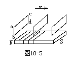 例3 如图10-5所示,水平放置的扁平条形磁铁,在磁铁的左端正上方有一线框,线框平面与磁铁垂直,当线框从左端正上方沿水平方向平移到右端正上方的过程中,穿过它的磁通量的变化是: