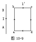 例5 有一自由的矩形导体线圈,通以电流I′。将其移入通以恒定电流I的长直导线的右侧。其ab与cd边跟长直导体AB在同一平面内且互相平行,如图10-9所示。试判断将该线圈从静止开始释放后的受力和运动情况。(不计重力)