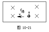 铜块的电流的方向向右,铜块内的自由电子的定向移动的方向向左。用左手定则判断:四指指向电子运动的反方向,磁感线穿过手心,大拇指所指的方向为自由电子的受力方向。图10-21为自由电子受力的示意图。