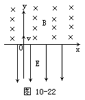例13 如图10-22所示。在x轴上有垂直于xy平面向里的匀强磁场,磁感应强度为B;在x轴下方有沿y铀负方向的匀强电场,场强为E。一质最为m,电荷量为q的粒子从坐标原点。沿着y轴正方向射出。射出之后,第3次到达X轴时,它与点O的距离为L,求此粒子射出时的速度v和运动的总路程s,(重力不计)。