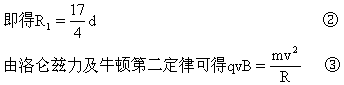 画进、出磁场速度的垂线得交点O′,O′点即为粒子作圆周运动的圆心,据此作出运动轨迹AB,如图10-17所示。此圆半径记为r。