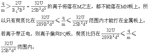 若离子正好打到金属板的远侧边缘N,则其偏转半径满足关系