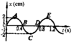 32. 图模5是某弹簧振子的振动图像,由图像知振动周期为_______s,图中A、B、C、D、E各点对应的质点中,动能最大的是________。