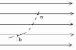 11.如图所示,实线是匀强电场的电场线,虚线是某一带电粒子通过该电场区域时的运动轨迹,a、b是轨迹上两点,若带电粒子在运动中只受电场力作用,则由此图可作出正确的判断是(AD)