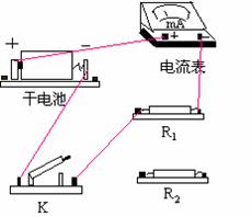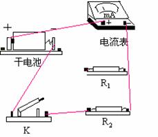 干电池(电动势约1.5V)的电动势。 (1)求在实物图上连线。 (2)已知量和直接测得量表示的待测电动势的表达式为E= I1I2(R1-R2)/(I1-I2),式中各直接测得量的意义是: (略) .