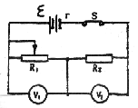 6、如图所示,当R1的触头向右移动时,电压表V1和电压表