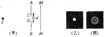 11、(6分)如图所示,(甲)图中S为点光源,AB为一遮光板,CD表示AB上的透光部分,C与D之间的距离d可以调节,MN为光屏,(乙)图和(丙)图上的白色部分表示光通过CD在屏上得到的光亮部分,则下列说法中正确的是