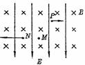 5.如图20-3所示,匀强电场E的方向竖直向下,匀强磁场B的方向水平有垂直纸面向里,现有三个带等量同种电荷的油滴M、N、P,若将它们放入该区域中,M油滴能保持静止,N油滴能以不变的速度vN水平向左匀速