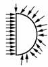 解析 大气压力垂直器壁作用在整个球形容器的表面如图13.1-6所示.取半球为研究对象,大气压力的作用等效于作用在半径为R的圆面上(图13.1-7)其值F0=πR2·P,所以,为了使这两个半球分开,应施加的力至少应为F=F0=πR2P.