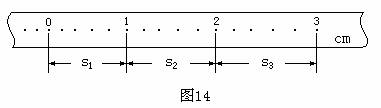 31.(4分)如图14所示是研究匀变速直线运动的实验中得到的一条纸带,舍去前面比较密集 的点,从0点开始将每5个点取做1个计数点(两个计数点之间的时间间隔t=0.1s):量得 s1=1.20cm,s2=2.60cm,s3=4.00cm,那么小车的加速度a=____m/s2;第2点的瞬时速度大小的表达式v2=____。