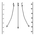 3. 如图带正电的动量相同的粒子A、B、C沿图示方向射入互相垂直的匀强电场和匀强磁场,不计重力和粒子间的相互作用力,由图可知( )