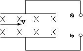 如右图是等离子体发电机示意图,平行金属板间的匀强磁场磁感强度B=0.5T,两板间距离为20cm,要使它输出电压为220V,则等离子体垂直射入磁场的速度v=