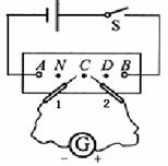 1. 如图为描绘电场中等势线的装置,图中A、N、C、D、B间距相等,其中A、B为金属圆柱电极,当电流从正接线柱流入灵敏电流计时,其指针向正接线柱一侧偏转.
