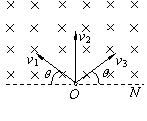 三个质子1、2和3分别以大小相等、方向如图所示的初速度v1、v2和v3,经过平板MN上的小孔O射入匀强磁场B,磁场方向垂直纸面向里,整个装置放在真空中,且不计重力。这三个质子打到平板MN上的位置到小孔的距离分别为s1、s2和s3,则 ( )