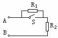 7、如图所示为保温电饭锅的电路示意图, R1、R2为电热丝, S为温控开关, A、B两点连接在家庭电路上, R1:R2=9:1, 加热时的功率为1000W,则( )
