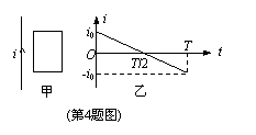 4.如图甲所示,长直导线与闭合金属线框位于同一平面内,长直导线中的电流i随时间t的变化关系如图乙所示。在0-T/2时间内,直导线中电流向上,则在T/2-T时间内,线框中感应电流的方向与所受安培力情况是( )