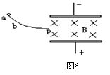 如图6所示,带电平行板间匀强电场竖直向上,匀强磁场方向垂直纸面向里,某带电小球从光滑轨道上的a点自由滑下,经轨道端点P进入板间后恰好沿水平方向做直线运动,现使小球从稍低些的b点开始自由滑下,在经过P点进入板间后的运动过程中,以下分析不正确的是