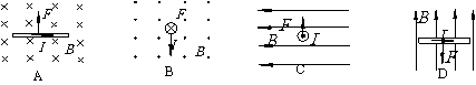 6、在图中,标出了磁场B的方向、通电直导线中电流I的方向,以及通电直导线所受磁场力F的方向,其中正确的是( )