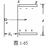 如图1-65所示,有一电子(电量为e)经电压U0加速后,进入两块间距为d、电压为U的平行金属板间.若电子从两板正中间垂直电场方向射入,且正好能穿过电场.求⑴金属板AB的长度;⑵电子穿出电场时的动能.