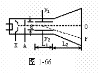 如图1-66所示的示波管,电子由阴极发射后,经电子枪加速水平飞入偏转电场,最后打在荧光屏上,已知加速电压为U1,偏转电压为U2,两偏转极板间距为d,板长为L1,从偏转极板到荧光屏的距离为L2,求电子打在荧光屏上的偏距OP.