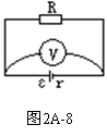 电动势为2V的电源跟一个阻值R=9Ω的电阻接成闭合电路,测得电源两端电压为1.8V,求电源的内电阻(见图2A-8).